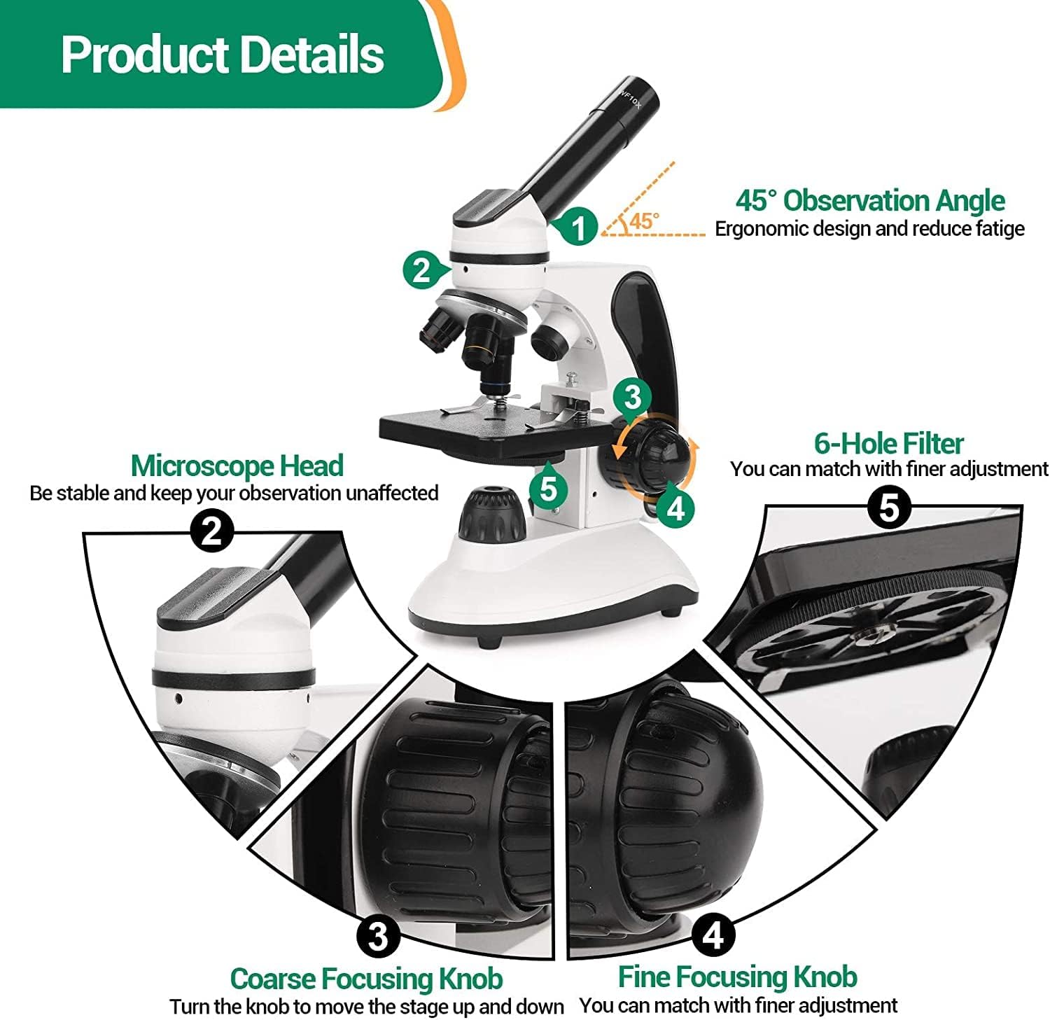 - 【Practical Educational Tool】The 40X-2000X biological microscope allows kids, adults, students, beginners, and hobbyists to explore the wonders of life science. Ideal for school labs, one-on-one instruction, or home teaching