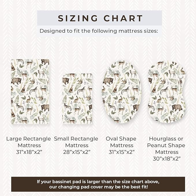 - BEAUTIFUL LONG LIFE - Unlike many other bedside bassinet sheets, our high quality blend of 95% cotton and 5% spandex will not pill or lose its vibrant colors over time. This bassinet mattress pad cover is designed to last! Fill your world with beauty by mixing and matching with Pobi Baby’s other woodland nursery bedding accessories: crib sheets, portable crib sheets, changing pad covers, and multi-use car seat and nursing covers.
