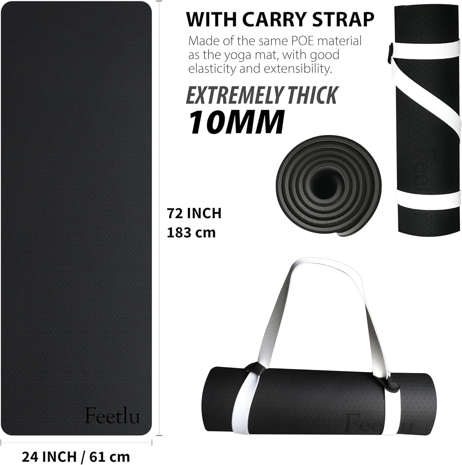 Extra Thick Exercise Yoga Mat with Strap - 2/5 Inch (10MM), Non-Slip Workout Mat for Yoga, Pilates, and Floor Exercises