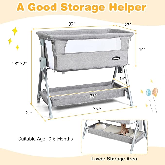- DETACHABLE SIDEBAR & BREATHABLE MESH: INFANS baby bedside crib has a zipper design on the side, which can be easily opened. Moms can reach in to soothe baby or take up baby when needed. The design of the four-sided mesh structure ensures the circulation of air, which is more convenient for mom to observe their babies at any time