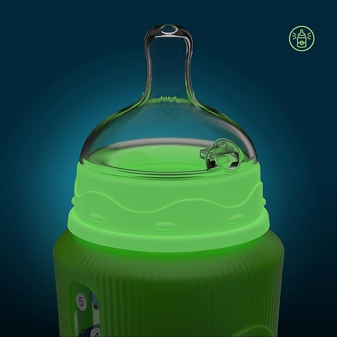 Smilo Baby Bottle Set with Stage 0 Slow Flow Anti Colic Nipple, 10 Oz / 300 ml Capacity, 3X Pack of Anti Colic Baby Bottles 0-3 Months - Glow in The Dark