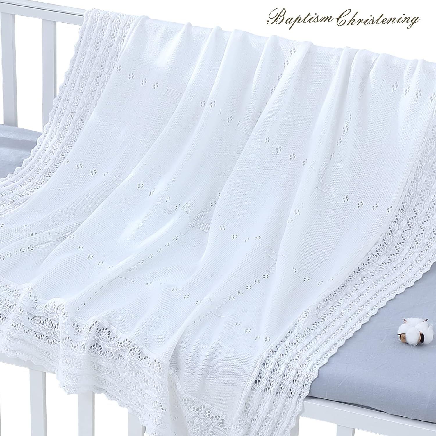 - WHITE BABY BLANKET: Baby blankets unisex is a good baptism christening gift for Newborn Boys Girls, a perfect keepsake from a godparent or relative.