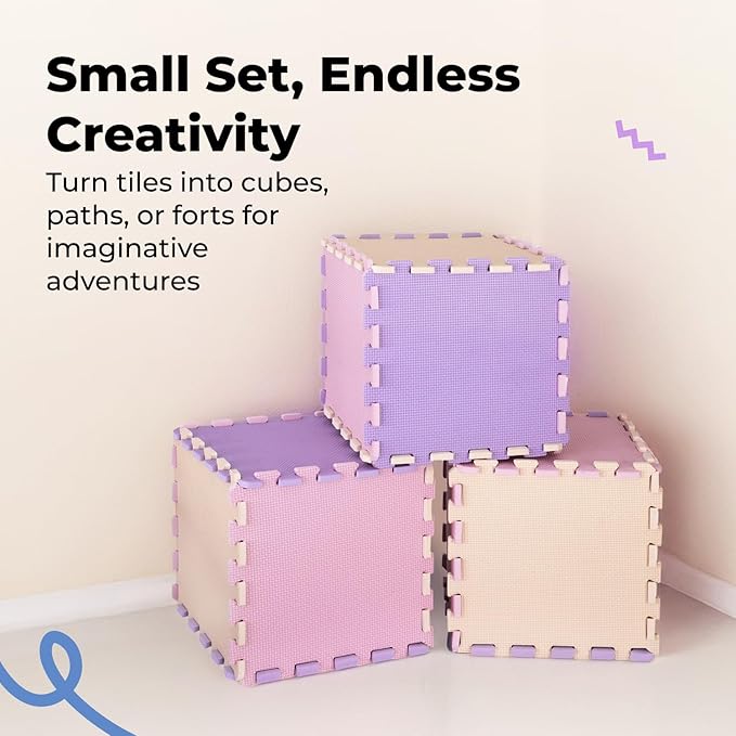 - 😴 EASY-TO-ASSEMBLE INTERLOCKING FOAM TILES: Our 12.4 x 12.4-inch interlocking foam tiles fit securely together, creating a customised play area for any room. Choose from our 16-piece set (covers 16 sq ft) or 36-piece set (covers 36 sq ft), each with matching borders for a polished look.