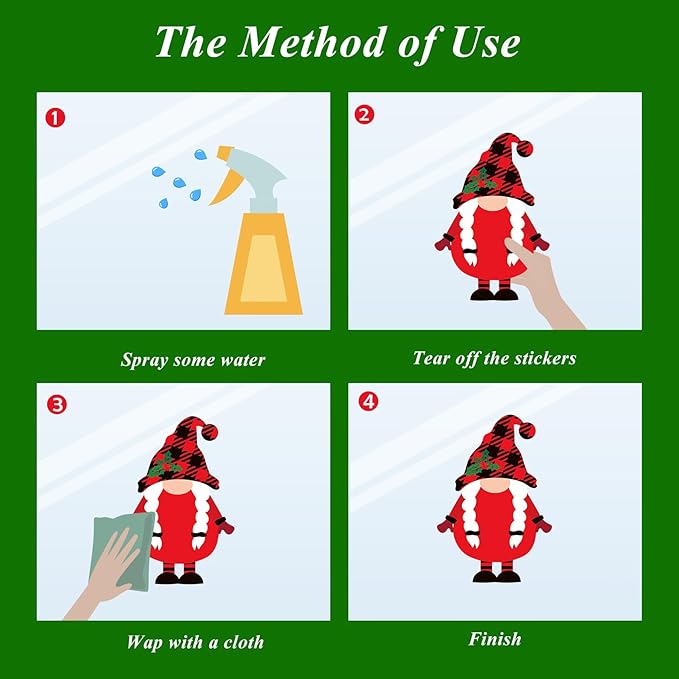 - CHRISTMAS WINDOW CLINGS GNOME: You don't need to prepare any STICKS! When you get the Christmas window stickers, just use the water to let it on the window, Perfect for you kids to decorate the winter Christmas window