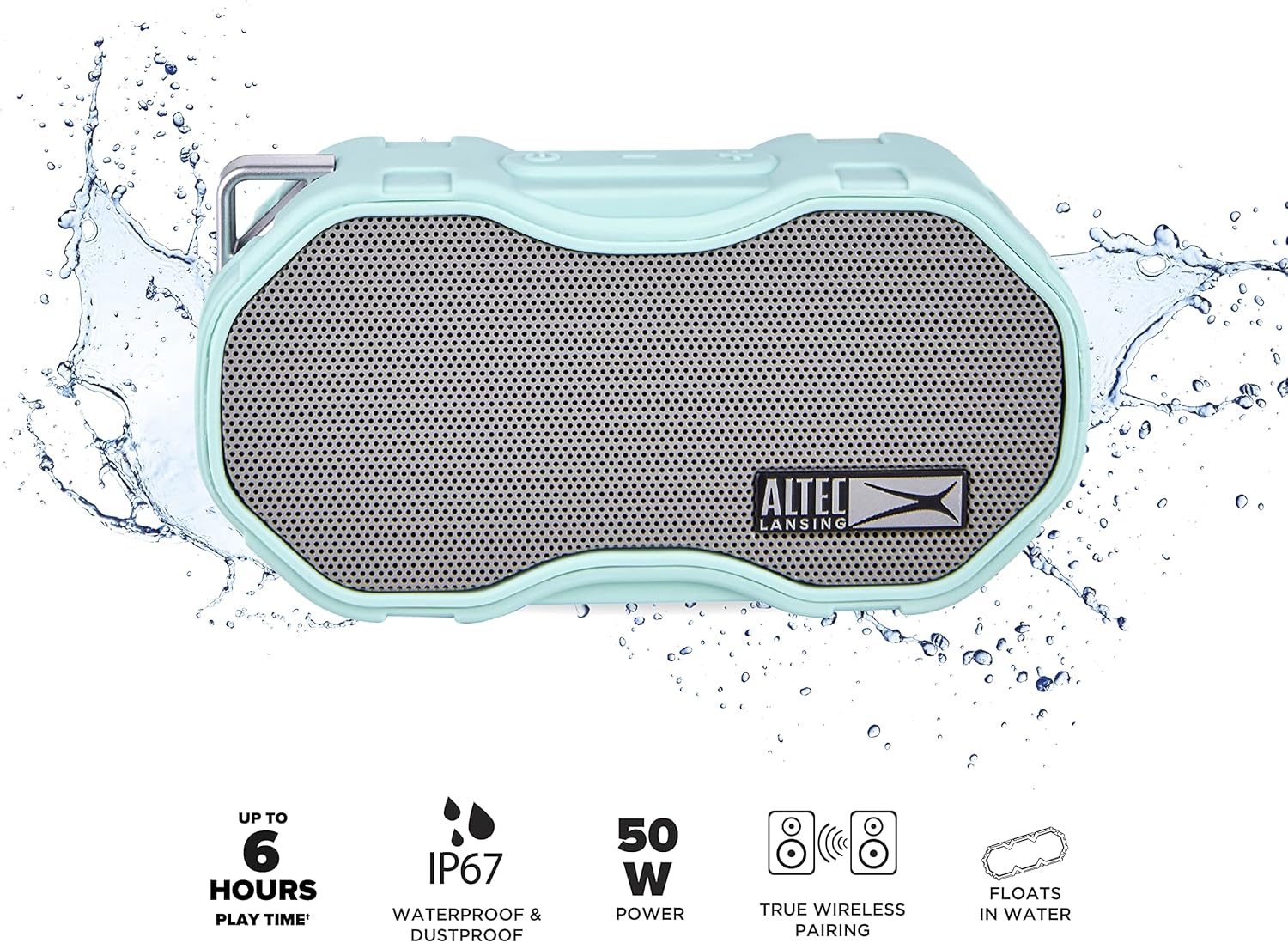 Altec Lansing Baby Boom XL - Waterproof Bluetooth Speaker, Wireless & Portable Speaker for Travel & Outdoor Use, Deep Bass & Loud Sound, 1 Pack, Mint