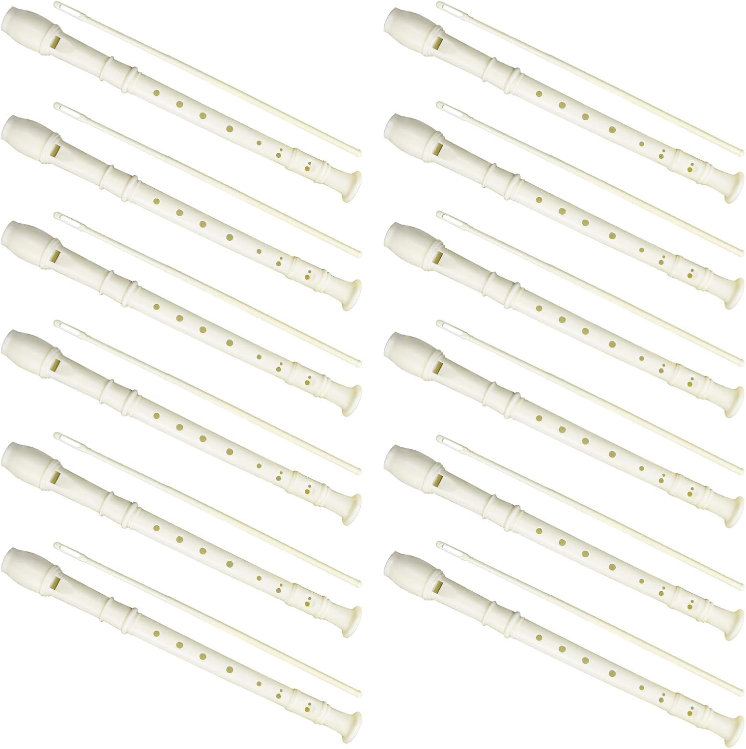 12 Pack 8 Hole Soprano Recorders Descant Flute With Cleaning Rod German Style for Beginner Graduation or Back to School Gift (white)