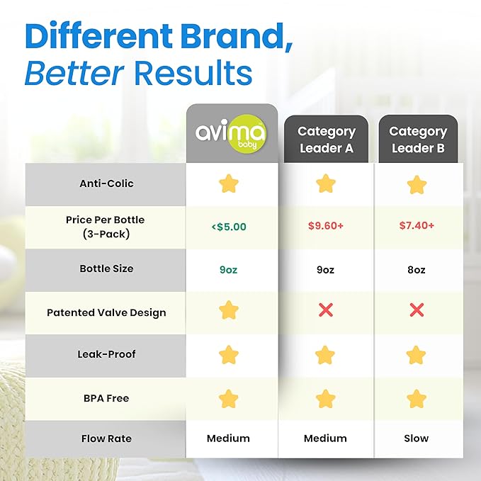 - Parent Designed, Safety First - Avima Baby Bottles came to life after a frustrated first-time mom & physician's assistant needed a solution for her newborn struggling with colic, and existing bottles just didn't cut it. We prioritize safety with BPA-free bottles for babies that meet the highest US standards for peace of mind and a happy feeding experience for you and your baby, every time.