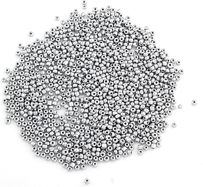 Perlin Glass Seed Beads 4mm 6/0 Round Mini Small Pony Spacer Beads 1100pcs for Jewelry Making Earrings Bracelets Pendants Waist DIY Handmade Metallic Color Kit (Silver)