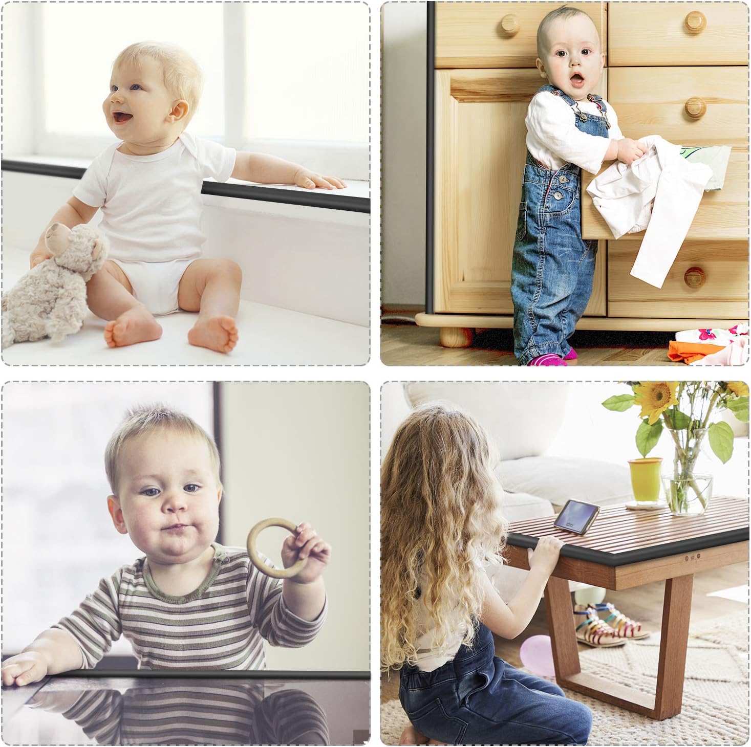 - EASILY INSTALL and PRATICAL: You could install Baby Proofing Edge Corner Protector in seconds, simply cut the right size and glue the foam to fit your furniture; Our Safe Corner Protectors use 3 M double-sided tape that sticks on wood, glass, tile, steel, and ceramic surfaces; In the process of using, make sure that the furniture is clean to make it more adherent; After use, the adhesion effect will be more obvious by gently pressing it with your hand