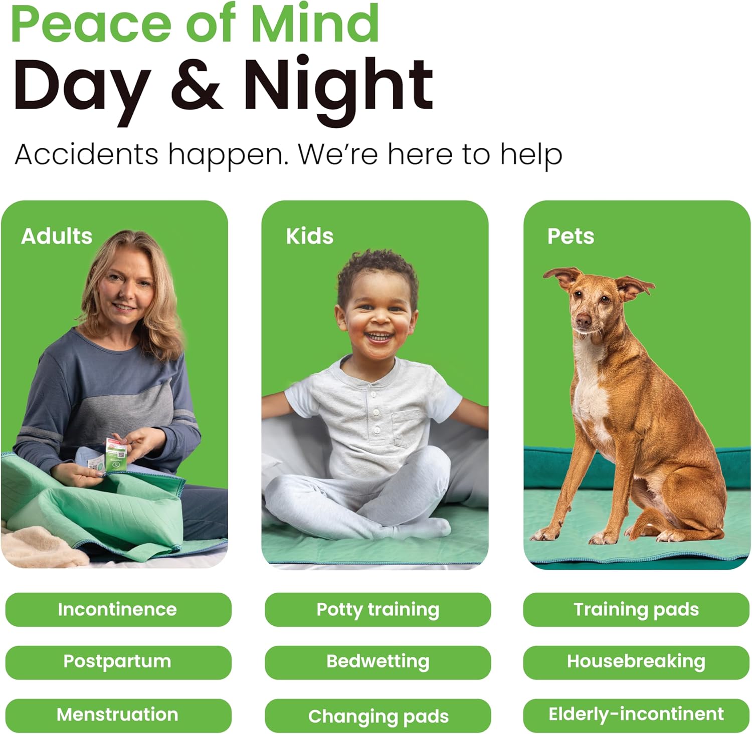 - WASHABLE UP TO 500X - With our Reusable Bed Pads, you can get a more comfortable sleep as they stay in the correct position – keeping you and your bed dry all night long! They are 100% Washable and Stain-Resistant – saving you up to 500 Disposable Underpads!