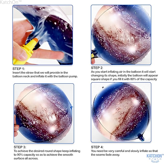 - EYE - CATCHING 4D SPHERE BALLOONS PACK - This large 4D Sphere outerspace foil balloons will make the surface bright present like mirror effect. This shiny foil galaxy ballons is ideal for any galaxy themed party decorations like space theme birthday decor, baby showers, graduation, weddings and many special events. These eye catching galaxy planet balloons will add a festive vibe your galaxy birthday party decorations, galaxy decorations or space birthday decorations. Powered by BRND.ME