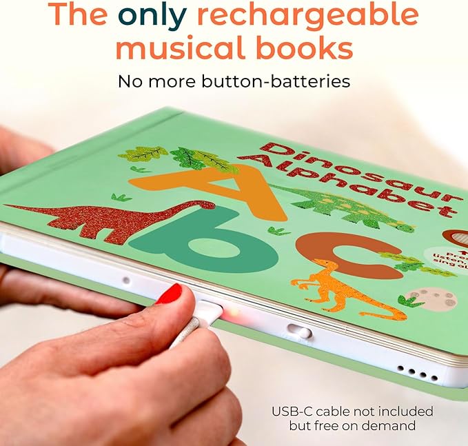 - Sing & learn with dino songs: Features an on/off button and a gentle-paced ABC dinosaur song to help kids sing along while exploring each letter. A fantastic dinosaur sound book that fosters early independence.