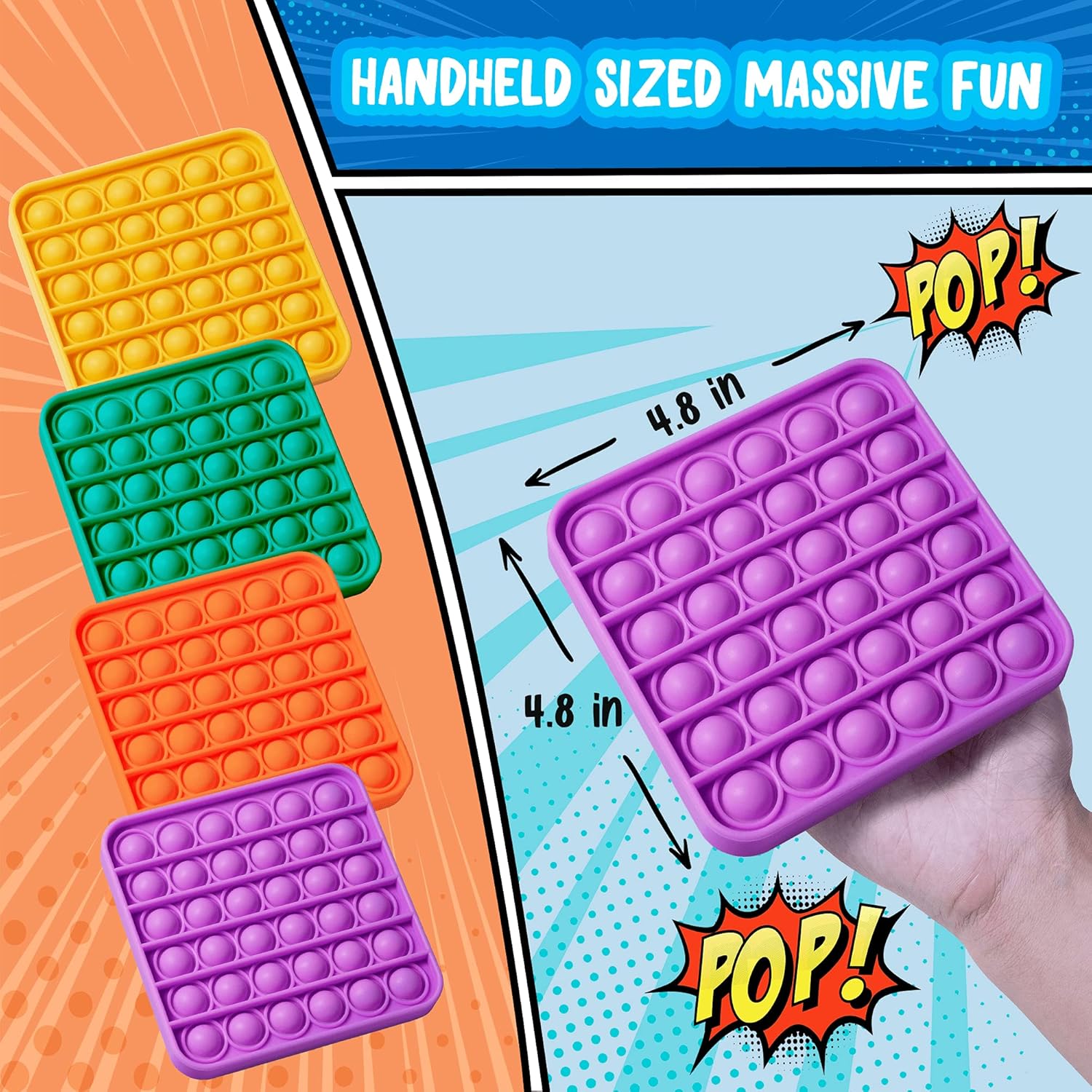 Push Pop Bubble Fidget Sensory Toy, 4-Pack Push Pop Fidget Toy, Square, Purple, Orange, Mint Green, Yellow, Party Favors