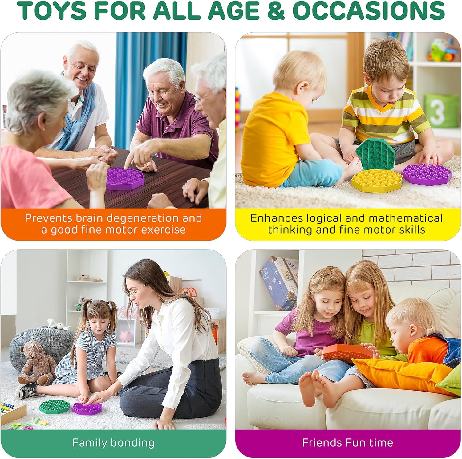 - 【Games for All Ages 】These stress-relieving pop pack toys are great for everyone. For kids, Fidget toys Pop bulk fidgets gifts are perfect for friends to spend a happy stress-relieving time together. For adults, relieve stress and keep the brain active, prevent the degeneration. It's a good helper to relieve anxiety. By squeezing our silicone bubble, you can get mental comfort and emotional release.