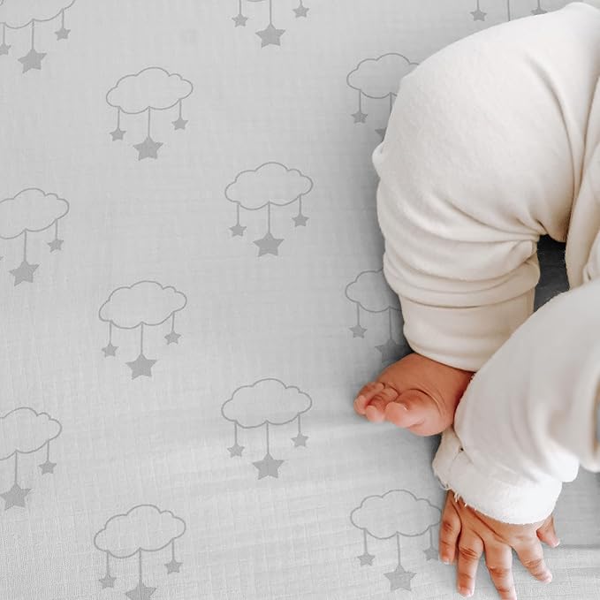 Newton Baby Fitted Single Layer Crib Sheet (2-Pack) - Ultra Breathable and Soft, Organic Cotton, Fits All Standard Cribs, Wishing on a Star White