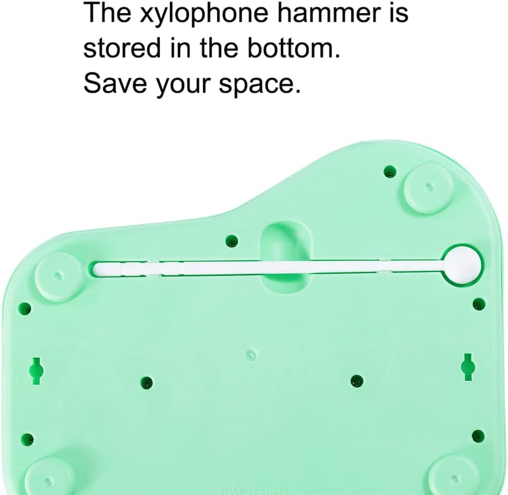 - 🎵[Baby Piano Xylophone Toy] This set included 1pcs fresh green xylophone piano and 2pcs small hammer on the Back Side. Each bar has number on it. And the bars and keys of the xylophone piano are in vivid color. Easy for kids to distinguish them.