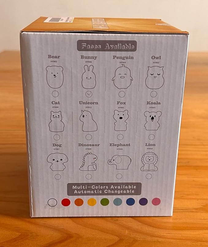 - ❤ Control Your Cute Lamp:Our night lamp comes with a remote control,which can change color,brightness, working modes and set timing(15mins,30mins and 60mins).Besides, colors of the animal night light can be changed by tapping the back of rabbit.The led night light brings you a convenient life and is a good choice as a nursery lamp.