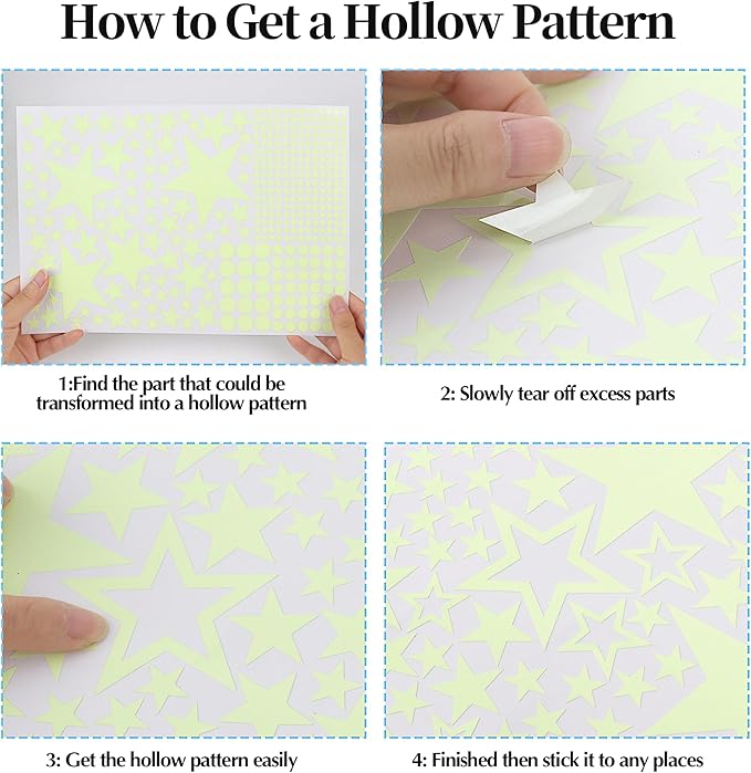 - Nice Stars Set,Easy to Use: The glow in the dark moon and stars set is easy to use,just need peel from the sheets and stick to anywhere you like,these stars will bring magically decorations to any places