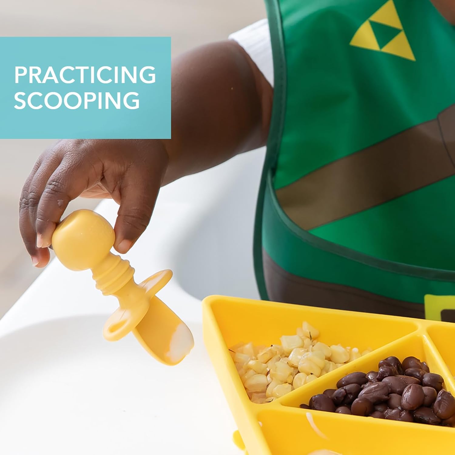 Bumkins Baby Utensils Set, Chewtensils Silicone Spoons for Dipping, Self-Feeding, Baby Led Weaning, Trainer Learning, First Stage Eating, Soft Practice Fork and Spoon, Babies 6 Months, Pineapple