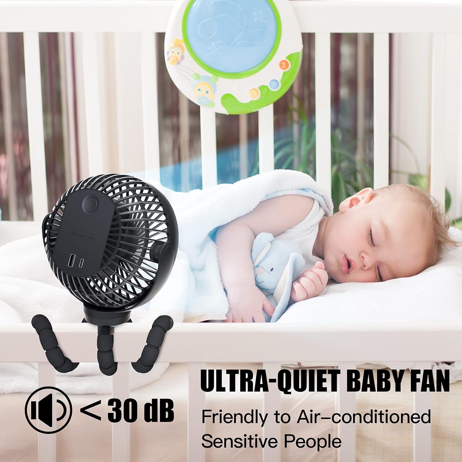 - IMPROVED COOL AIRFLOW, MIGHTY YET QUIET BRUSHLESS MOTOR: Small but sturdy, this small portable baby fan has three different speeds, designed to keep your baby cool without an irritating noise. Its powerful 5000RPM turbo motor, giving you an instant breeze of up to three meters. Mighty yet quiet fan for baby stroller, bed, office, home. Now is the time to invest in a decent portable fan that will keep you cool all summer long.