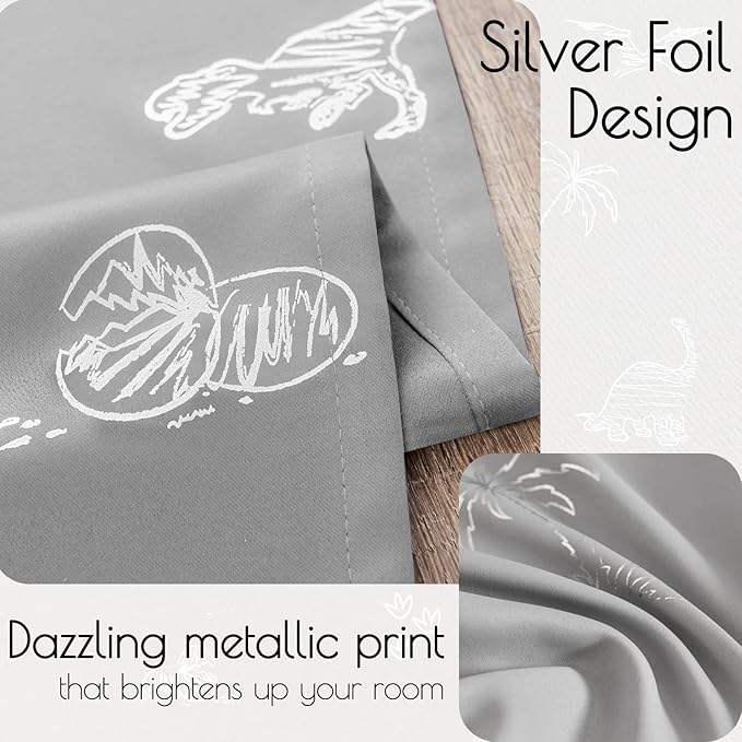 Vangao Kids Curtains Grey Blackout Dinosaur Curtains for Boys Kids Nursery Girls Room Silver Dino Foil Print Thermal Insulated Drapes Grommet Top Window Treatments 84 Inches Length 2 Panels