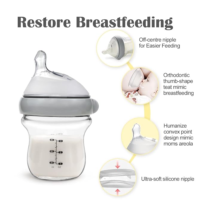 - MOST NATURAL FEEDING EXPERIENCE - The Off-centre Orthodontic Thumb-shaped Silicone Teat mimics the shape of a mother's nipple during breastfeeding, making the TRANSITION from breast feeding to bottle feeding a pleasant one.