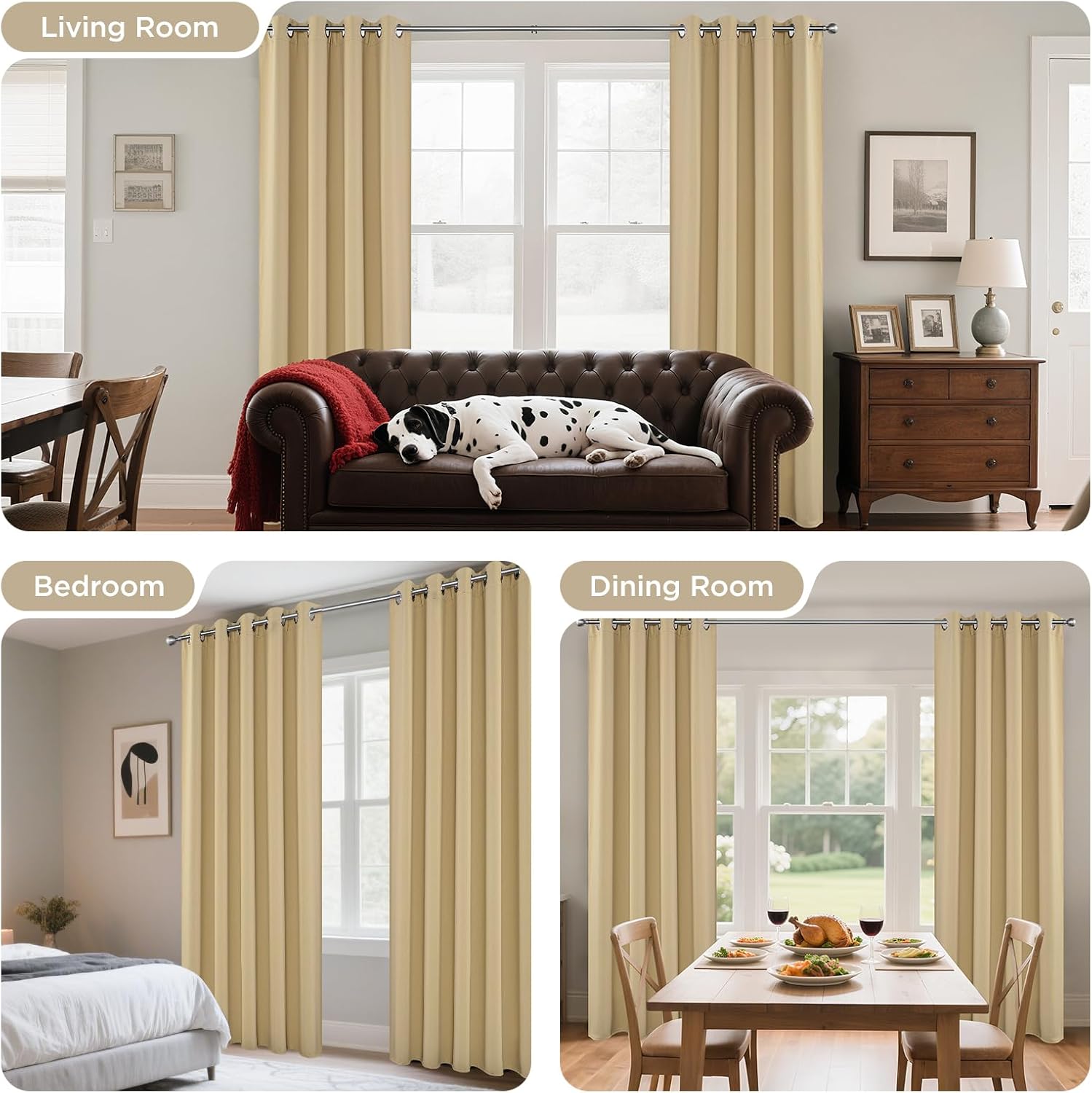 Joydeco Blackout Curtains 84 Inch Length 2 Panels Set, Thermal Insulated Long Curtains& Drapes 2 Burg, Room Darkening Grommet Drapes for Living Room Bedroom Window (W52 x L84 Inch, Beige)