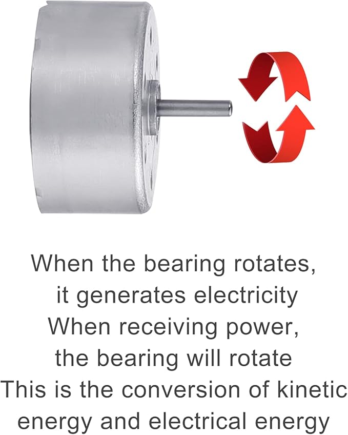- Two-way Conversion: When the bearing rotates, it generates electricity, when receiving power, the bearing will rotate. This mini wind generator set enables the conversion of kinetic and electrical energy