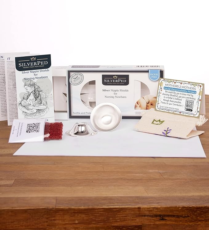 - ✅ EASY TO CLEAN: SilverPed nipple shields come with a special cleaning sponge to keep the product clean. The outer surface of SilverPed nursing cup is shiny and the inner is brushed matte. The natural silver tends to lose its shine over time as a result of chemical reaction between silver and sulphur in the air. The special sponge makes it easy to clean silver items. SilverPed nipple shields are made by experienced silversmiths.