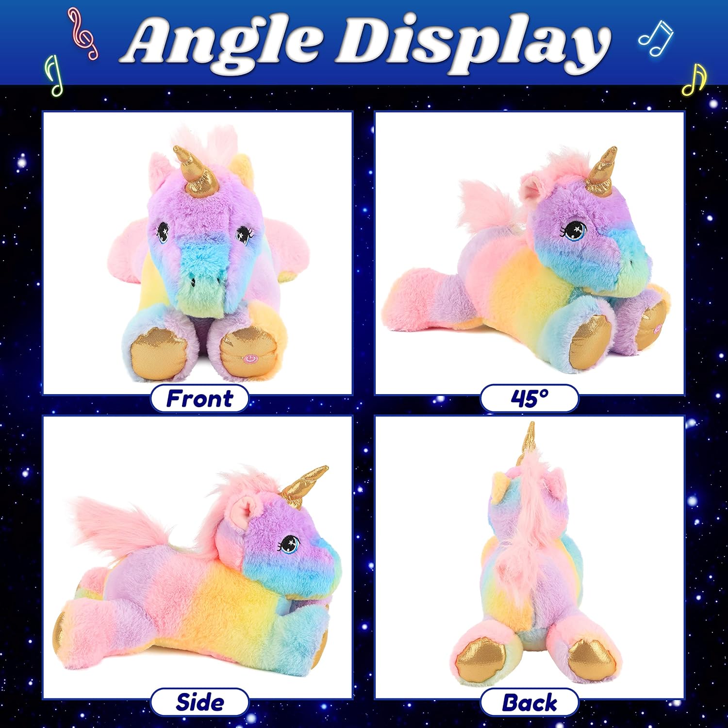 - LULLABY INSIDE: Press the switch on the paw of the unicorn plush toy to play children's songs, the songs will make you feel more comfortable and at the same time can bring more joy to the children!
