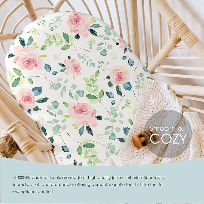 - Ultra Soft & 4-way Stretch: Made of extra soft stretchy jersey knit fabric. Grssder bassinet sheet offers a breathable, sweat-absorbent tee shirt like feel for exceptional comfort, providing your little ones a safe and comfy sleeping environment.