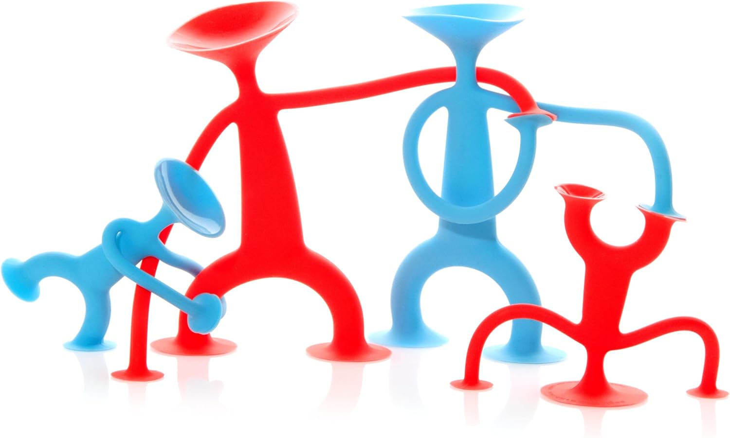 - Set of 4 stretchy silicone play figures with suction cup limbs