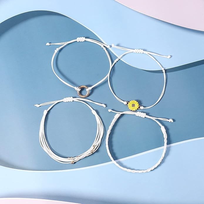 - Unique Design: The white string bracelets are made of waterproof ropes, cute sunflower and cute beads. Each bracelet is as unique as the person wearing it.