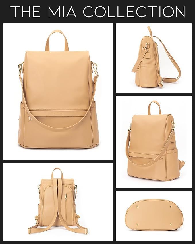 MIA + SOPHIA Leather Diaper Bag Backpack with USB Charging port, Changing Pad, Stroller Straps, and Bottle Holder (Brown Mia)