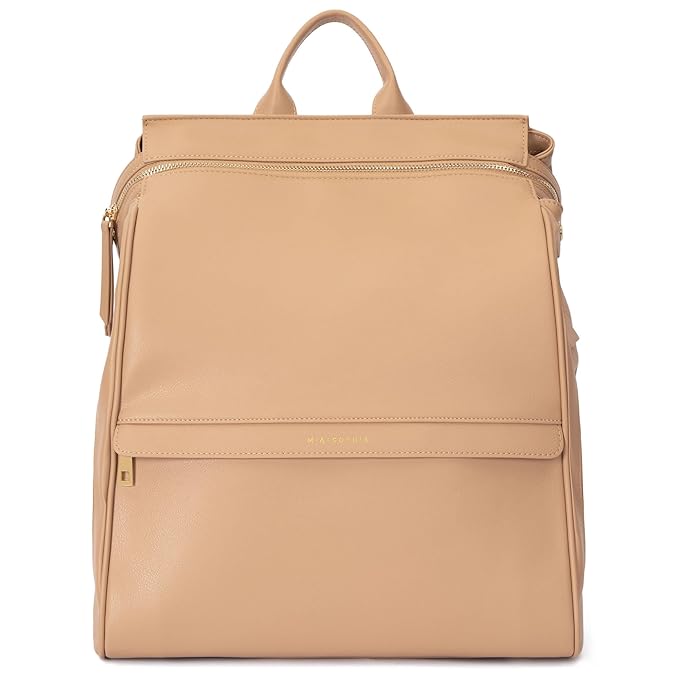 MIA + SOPHIA Leather Diaper Bag Backpack with USB Charging Port, Changing Pad, Stroller Straps, Bottle Holder (Brown Sophia)