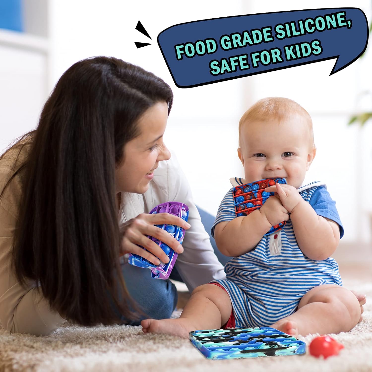 - 🥇【Premium Quality and Vibrant Colors】Our pops toys are made from food-grade non-toxic silicone, which is completely safe for kids and adults alike. Silicone is a durable material with no unpleasant smell – it’s also dishwasher safe, which makes it easy to keep clean. The color combinations are designed to be visually stimulating for children without being overwhelming, while the popping sounds provide great auditory feedback.