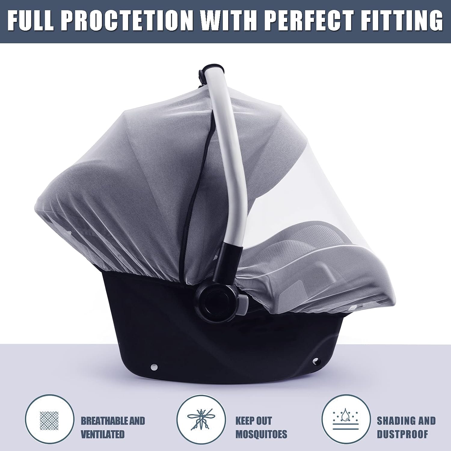 - EASY AND QUICK TO INSTALL: Unique design in the market-double olive designs for fixation for 1 time intalling for lating use. The baby insect netting universally fits most baby car seats and can be attached very quickly thanks to the elastic band.