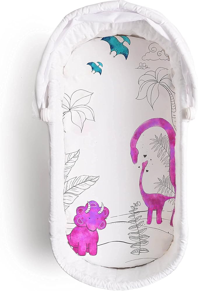 JumpOff Jo - Hypoallergenic Fitted Bassinet Sheet for Baby Boys & Girls - Rectangular, Hourglass & Oval Crib Compatible, Soft, Breathable, Machine Washable - Tiny Dino, Pink