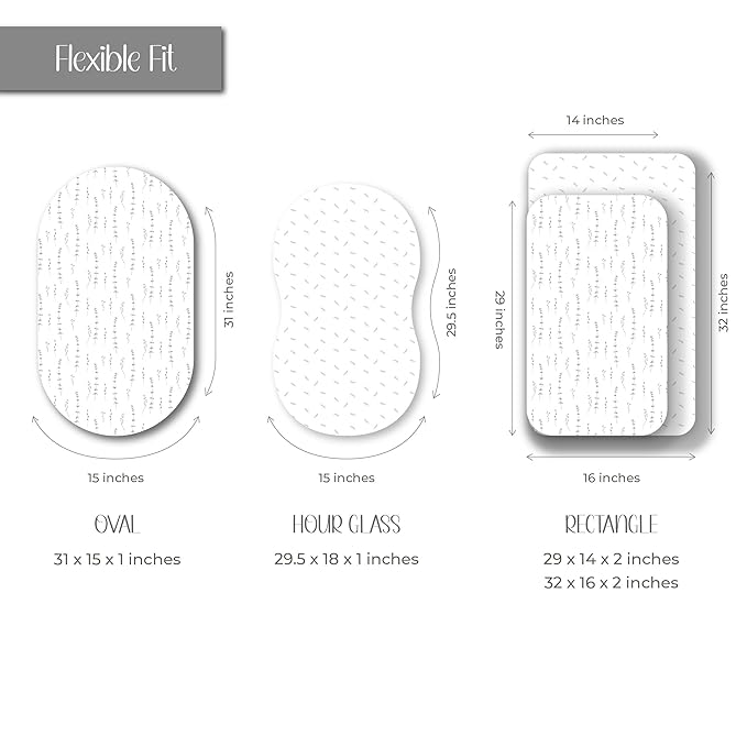 - Perfect Fit for Standard Bassinet Mattresses: Designed with a universal fit in mind, our bassinet sheet measures 32x16x3 inches, making it ideal for most standard bassinet mattresses and mini co-sleepers. It snugly fits oval (31”x15”x1”), hourglass (29.5”x18”x1”), and rectangular mattresses ranging from 29”x14”x2” to 32x16x2”. Our bassinet sheets are compatible with popular brands like the Happiest Baby Snoo Smart Sleeper, HALO BassiNest Swivel Baby Bassinet, UPPAbaby Bassinet and Dream On Me Karley Baby Bassinet.