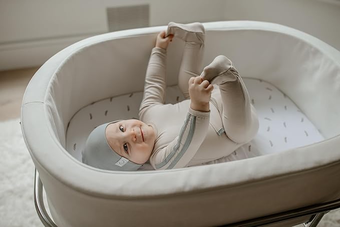 - Forest-Inspired Design: Elevate your baby’s nursery with the Ely’s & Co. Fitted Bassinet Sheet Set– a premium 2 pack of baby fitted bassinet sheets. This set features a fresh white base with a forest grey leaf and floral design adding a touch of woodland charm to your nursery décor.