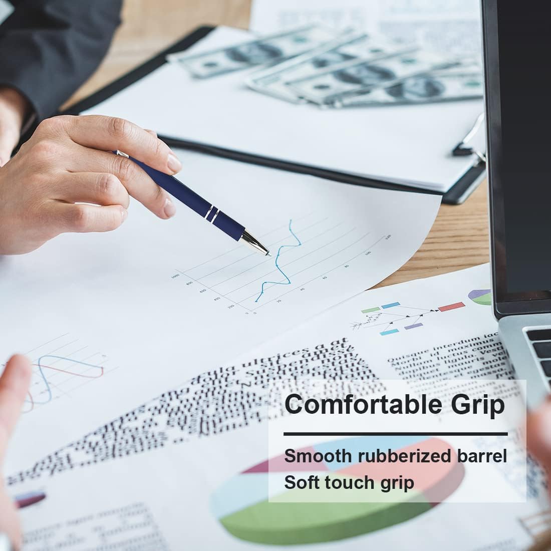 Ballpoint Pen with Stylus Tip, Soft Touch Click Metal Pen, 1.0mm Medium Point, Black Ink, 12 Count(Dark Blue)