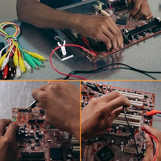 - 【Long Robust】:The test leads with alligator clips are made of high-quality PVC material. So, the alligator clips electrical has good quality and good contact, and the working life will be much longer. The insulated crocodile cable would protect the aligator clips and the copper wires, and the 5 probes have the good good conductivity. Moreover, the material is much more environmental friendly.