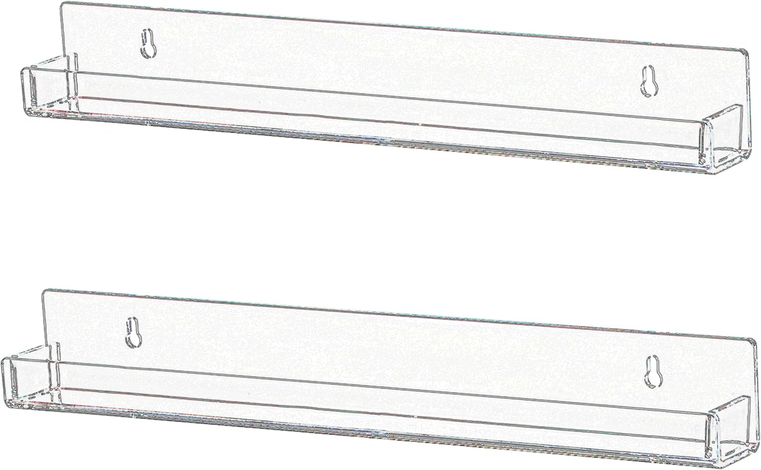 - SIZE:15x1.6x2(LxWxH)inch/each,5mm thickness.The inner diameter of the acrylic shelf is 1.25"(Please confirm that the bottle diameter is not greater than 1.25" before purchase)package include 2 pieces of acrylic wall book shelf and install hardware,if use it as nail polish organizer,holds up to 30 bottles of nail polish (actual number may vary based on size and shape of bottles),each wall floating shelf is individual,It can be installed in a row or separately according to your preference.