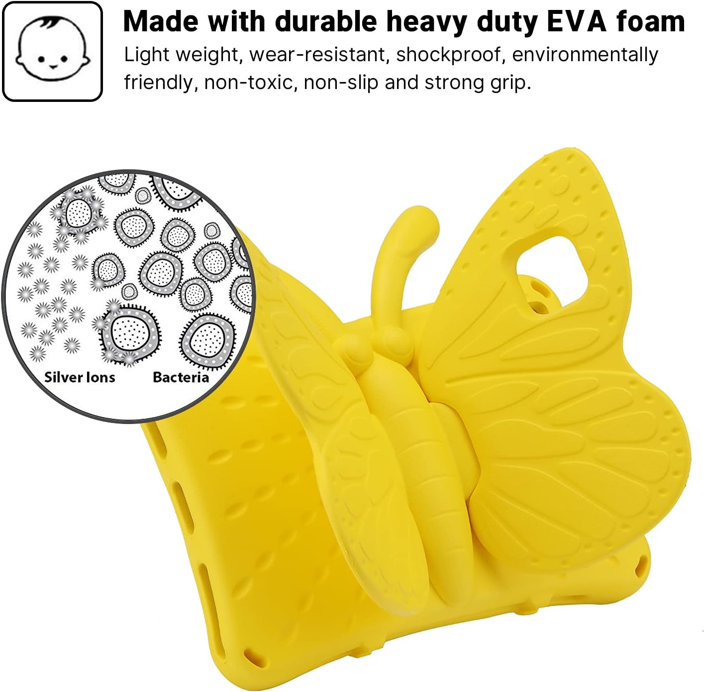 Fire HD 10 Kids Tablet 11th Gen 2021 2023 Case 10.1 Cute Butterfly Kids Pro Case with Stand Light Weight EVA Rugged Shockproof Heavy Duty Kids Friendly Full Cover for Kids Girls (Yellow)