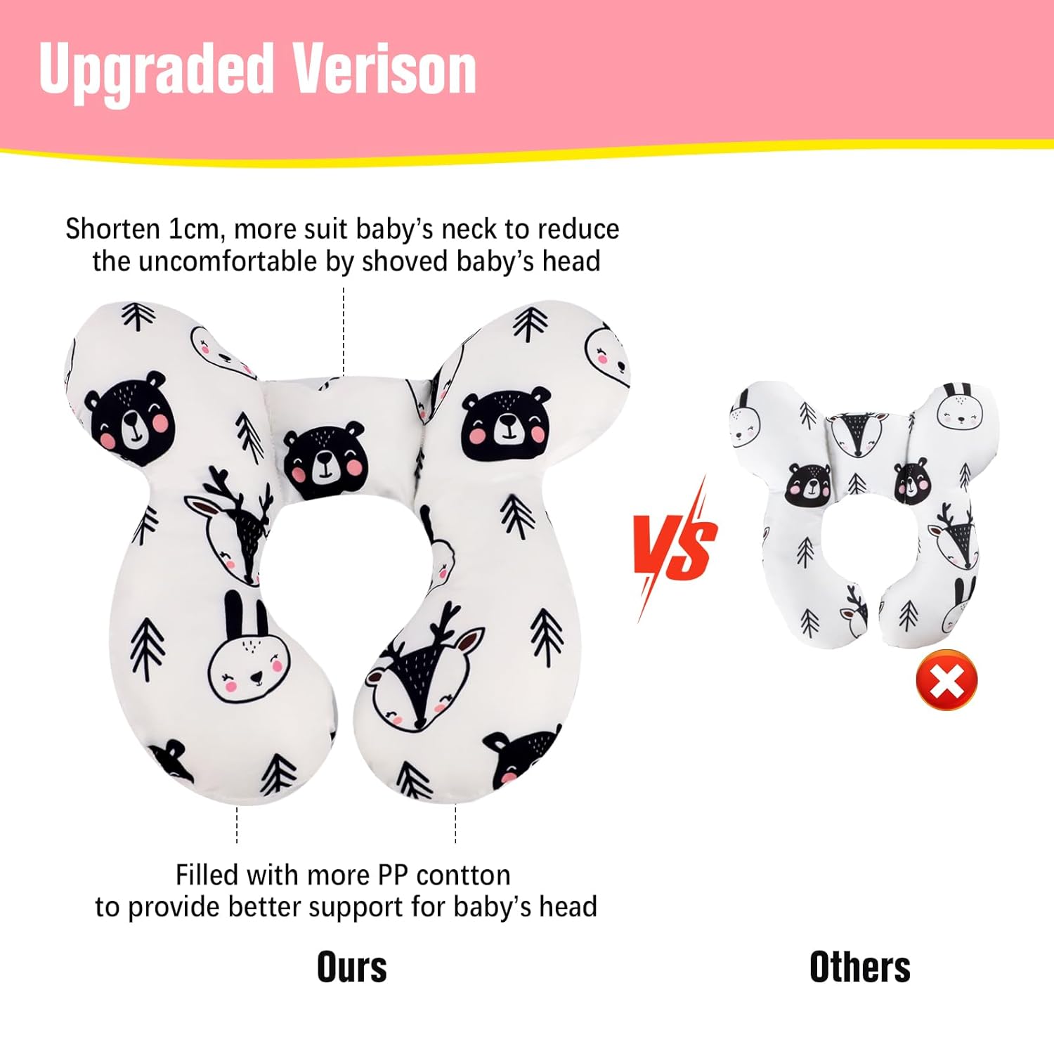 - U Shaped Design: baby support pillow provide a better support for baby's head, and Reduce width of the neck support part which may not push baby's head to feel uncomfortable
