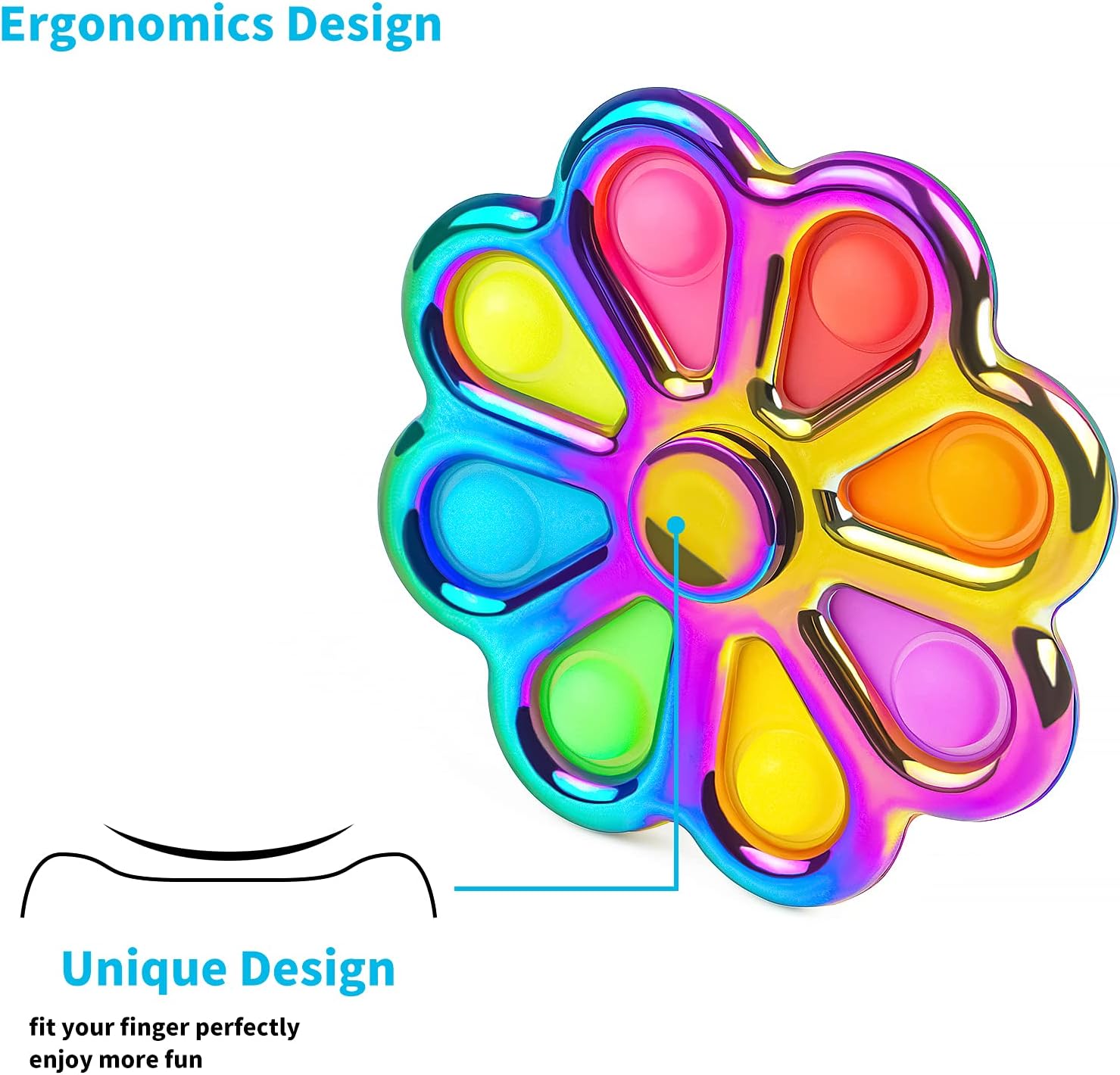 Metal Fidget Spinner, Push Popping Bubble Fidgets Sensory Toys, Party Favors for Kids 3-12, Toy for Adult Anxiety Relief, Gifts for Autistic Boys (Flower)