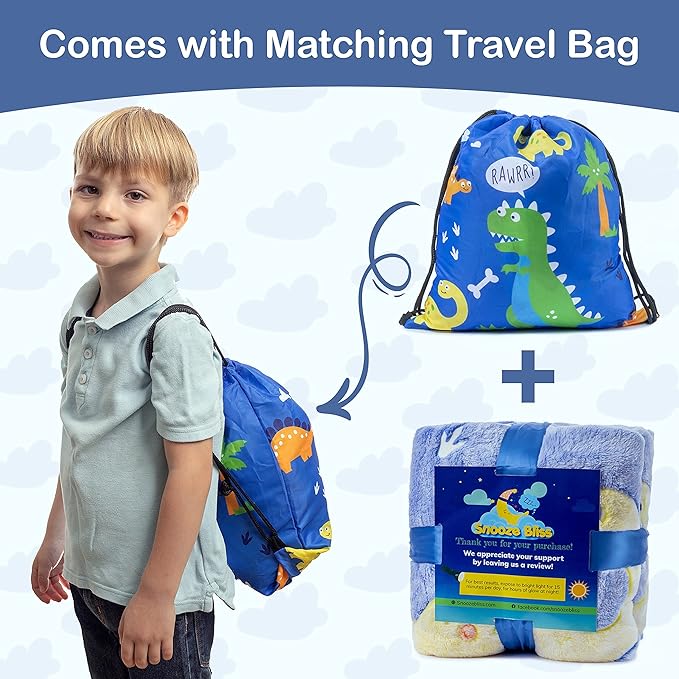 - 🎁 PERFECT GIFT FOR KIDS - Our fleece dino blanket makes a fantastic birthday or Christmas present with so many uses! Snuggle up on the sofa, use it as a play mat, or make a fun glowing blanket fort! With a matching travel bag, they’ll love bringing their favorite blanket along for camping, travel and slumber parties. Travel bag also serves as a cute gift bag!