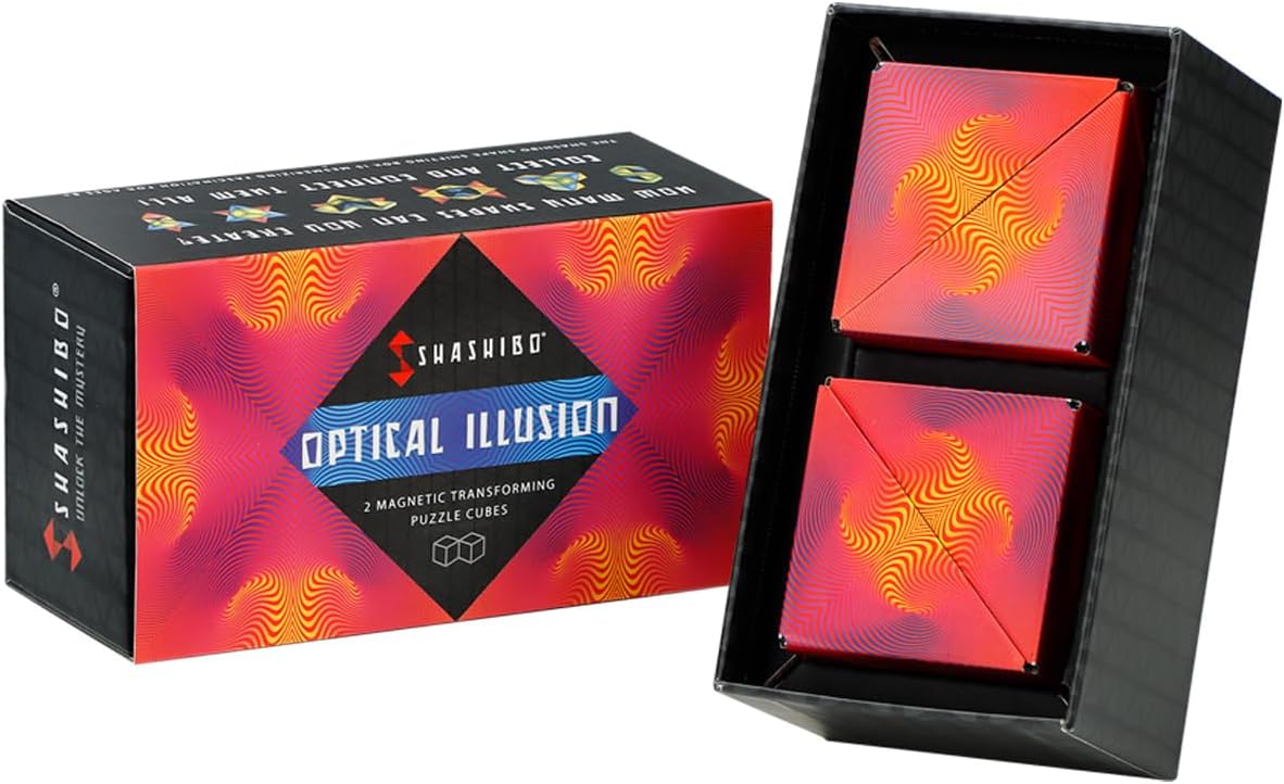 SHASHIBO Shape Shifting Box - Award-Winning, Patented Fidget Cube w/ 36 Rare Earth Magnets - Transforms Into Over 70 Shapes, Gift Box, Download Fun in Motion Toys Mobile App (Optical Illusion, 2 pack)
