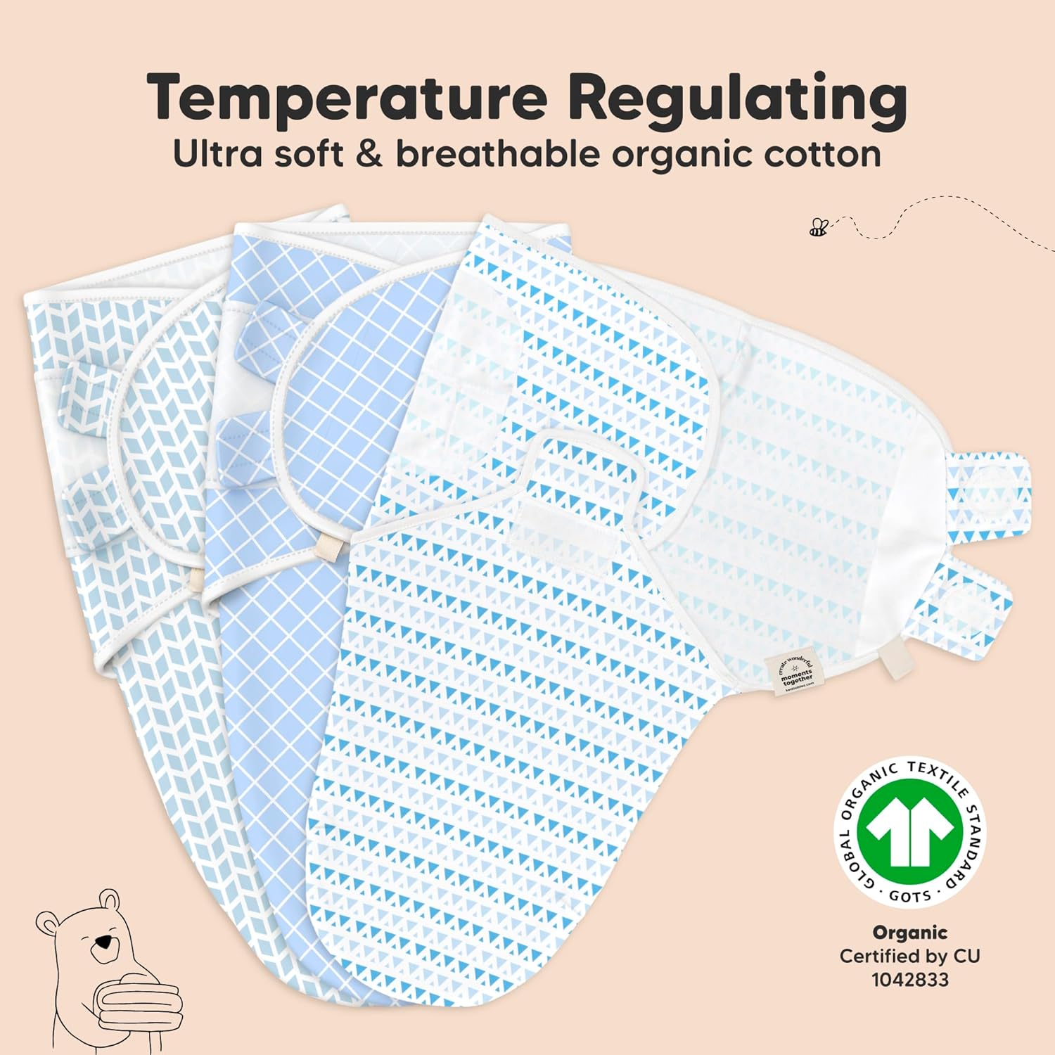 KeaBabies 3-Pack Organic Baby Swaddle Sleep Sacks - Swaddles for Newborns, Infant 0-3 Months, Baby Girls, Boys, Soft & Snug Newborn Sleep Sack, Nursery Swaddling Blankets (Storm)