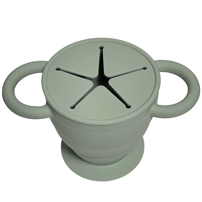 BraveJusticeKidsCo. | Snack Attack II Snack Cup | Collapsible Silicone Snack Container | Toddler and Baby Snack Catcher Lid (Desert Sage)